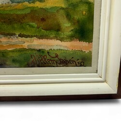 | Omschrijving | Aquarel op papier, Gezicht op Westzaan. Rechtsonder gesigneerd Willem Jansen., gedateerd 1952. |