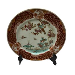 | Omschrijving | Twee Chinees porseleinen borden: één met vissendecor, 19e eeuw, en één met decor van vogels in granaatappelboom, 20e eeuw, daarbij: Chinees Imari porseleinen bedekte kom, alle 20e eeuw |