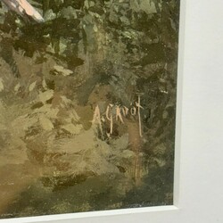| Omschrijving | Gouache op papier, dorpsgezicht met mogelijk de Sint joriskerk in Dedgum. Rechtsonder gesigneerd A.Groot |