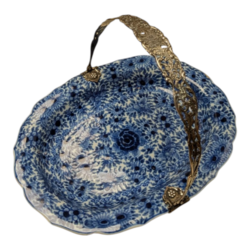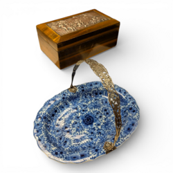 | Kavel | 2844. Houten doosje met zilveren plaquette en Tichelaar Makkum mandje met zilveren beugel |