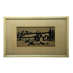 | Omschrijving | Oost-indische inkttekening op papier, voorstelling van een boerderij. Rechtsonder gesigneerd Jan Frearks van der Bij (Drachten 1922 – Bartlehiem 2013), gedateerd 1956. |