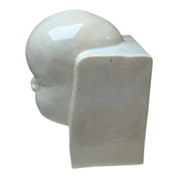 | Omschrijving | Een vroeg 20e eeuws witgeglazuurd keramieken sculptuur, voorstelling van een babykopje, aan de achterzijde met tekst 'janneman'. Aan de onderzijde gesigneerd 'Brouwer Holland' = ontwerp & uitvoering W.C.Brouwer, in eigen atelier, Leiderdorp. |