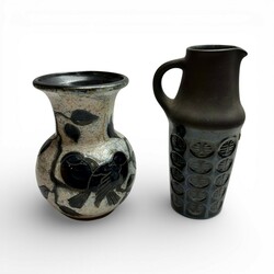| Omschrijving | Een lot met vijf stuks Design aardewerk, bestaande uit drie vazen, schaal en een oorkan. Met decors van bladeren, vogels en abstracte patronen. Twee gemerkt voor Roger Guerin (1896-1954), België. De rest gemerkt voor Soholm, Denmark. Jaren 60/70. |
