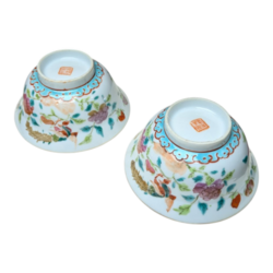 | Omschrijving | Lot van twee 20e eeuwse Chinees porseleinen kommetjes, met Famille Rose decor van vogels en bloemen. Aan de onderzijde gemerkt met zegelmerk. |
