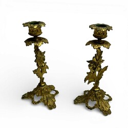 | Kavel | 2437. Verguld bronzen piëdestal en paar kandelaars |