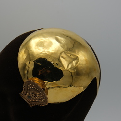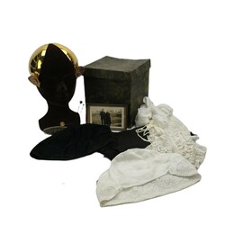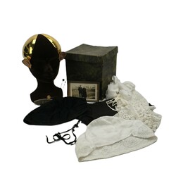| Omschrijving | Een 20 karaats gouden oorijzer, mr. H. Ament, Joure 1833-1873, met 19e eeuwse 14 karaats gouden filigrain knoppen, in originele doos. Daarbij een 14 karaats gouden speld en enkele mutsen. |