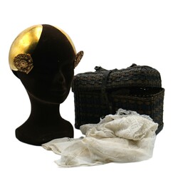 | Omschrijving | Een antiek 19e eeuws 20 karaats (833/1000) gouden oorijzer, mr. J. Keuning, Joure 1872, met bijbehorende mutsjes in spoormandje en versierd met 14 karaats (585/1000) geelgouden filigrain versierde oorknoppen. |