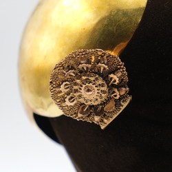 | Kavel | 217. Gouden oorijzer met spoormandje met mutsen |