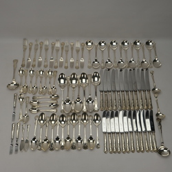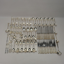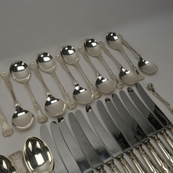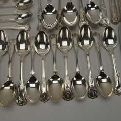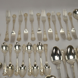 | Omschrijving | Groot eerste gehalte (925/1000) Engels zilveren bestek, zogenaamd ‘Kings Pattern’. Bestaande uit zeven opscheplepels, twee grote ijslepels, twee sauslepels (klein model), twaalf soeplepels, zes grote en zes kleine eetlepels, 14 dessertlepels, 6 zes grote en zes kleine vorken, twaalf grote en twaalf kleine messen, drie vleesvorkjes en twee botermesjes. Verschillende makers, o.a. Cooper Brothers & Sons (Sheffield) Norton & White (Birmingham), James Dixon & Sons (Sheffield) John Round & Son (Sheffield), George Maudsley Jackson (Londen). |