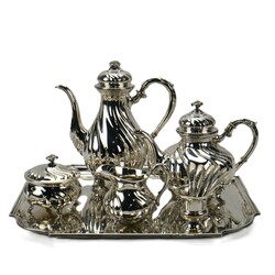 | Omschrijving | Vijfdelig sterling silver koffie- en theeservies; gemerkt Wilkens Sterling 925 |