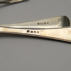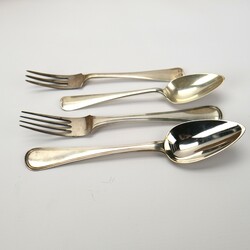 | Omschrijving | Een notenhouten bestekcassette, gemerkt Bonebakker Amsterdam, met zilveren plaquette ‘Warners - Niemann’, vermoedelijk afkomstig van Cornelis Jacobus Warners (1871-1940) en Johanna Wilhelmina Frederika Niemann (1865-1954). De bovenste lade gevuld met twaalf lepels en elf vorken, eerste gehalte, dubbelrondfilet uit 1885. Mr. Wed. J.F. van den Broek (1879-1888), Amsterdam. De onderste lade is gevuld met tweede gehalte zilver, Haags lof, twaalf kleinere vorken en twaalf lepels. Jaarletter R = 1901, van Kempen Voorschoten. Tevens een tweede gehalte zilveren aardappellepel (van Kempen, 1926) en twee opdienlepels (van Kempen 1909 en Hooykaas 1922). Alles gemerkt met initialen ‘W.N.’ |