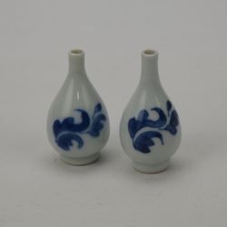 | Omschrijving | Lot van twee Chinees porseleinen miniatuurvaasjes met blauw-wit floraal decor. Kangxi periode (1661-1722). |