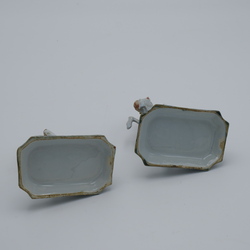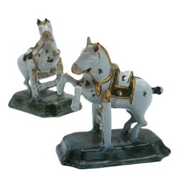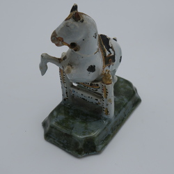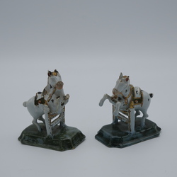 | Omschrijving | Lot van twee Delfts aardewerken 18e eeuwse sculpturen, paarden bij een hekwerk. Polychroom (koud)beschilderd op onderglazuur groene voet . |