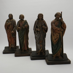 | Omschrijving | Lot van vier 19e eeuwse uit hout gestoken en polychroom beschilderde sculpturen, evangelisten. |